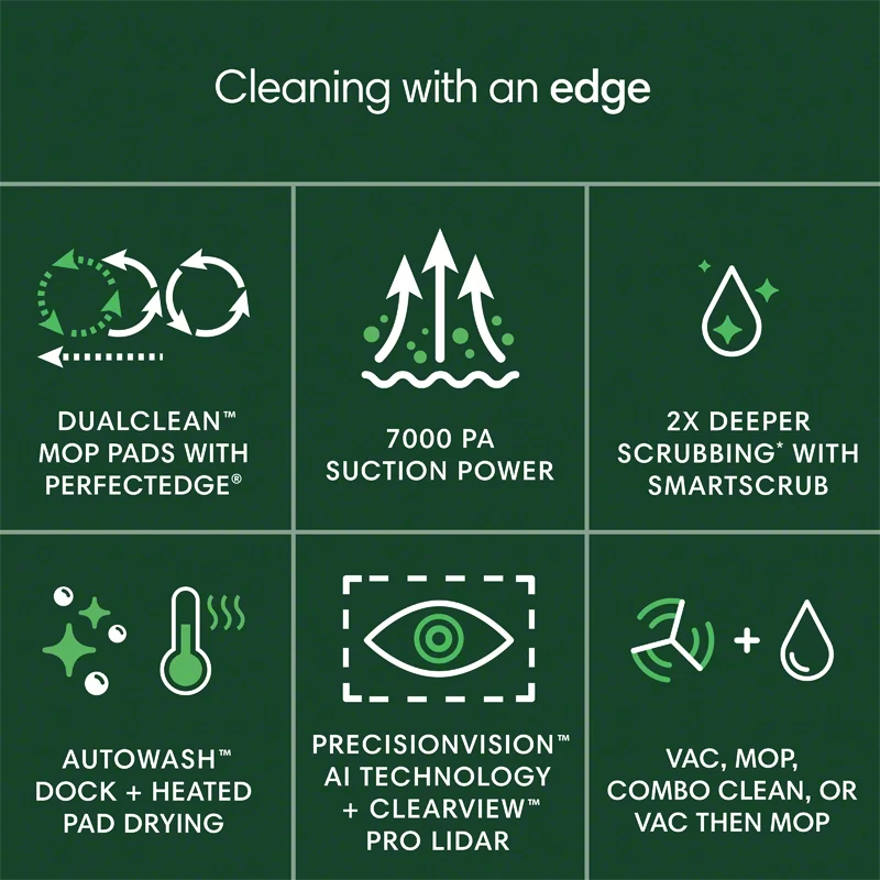 | Special Feature | Anti-Fall, Bagless, Dirt Detection Sensor, Eco Mode, LiDAR Navigation |