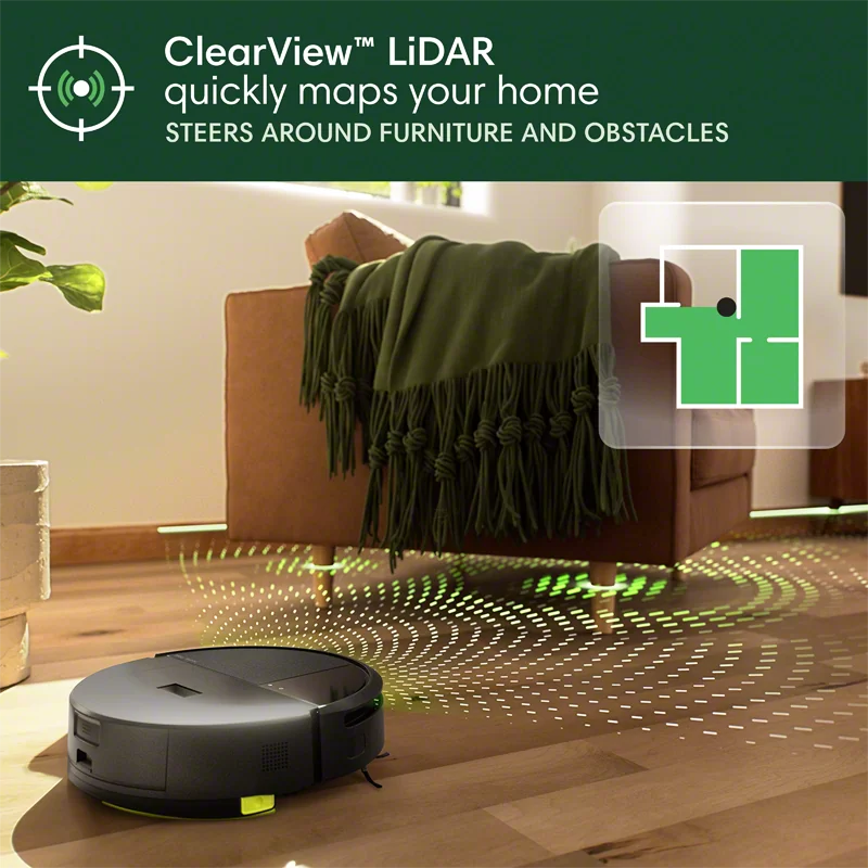 • SUPER-SMART MAPPING AND NAVIGATION. ClearView LiDAR sleekly hidden inside the robot quickly maps your home, avoids obstacles and cleans in neat rows, even in the dark.